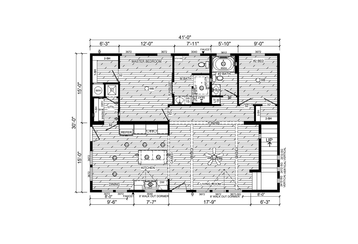 Additional Specs: 2x8 Double Perimeter and Marriage Wall Rails / 12" I-Beams with 8' OC Outriggers / Continuous Ridge Beam - Entire Length of Home / Fully Vented 10" Residential Eaves / Fiber Cement Fascia Plank