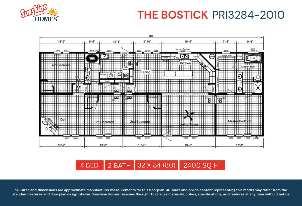 The Bostick PRI3284-2010 with 8 foot Sidewalls 4+2 / This spacious 4 bedroom 2 bathroom home brings the comfort of everyda...